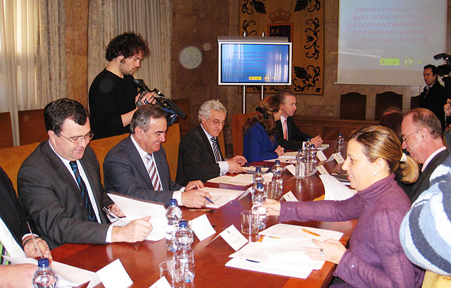 El consejero de Obras Públicas y Ordenación del Territorio, José Ballesta, asistió hoy a la comisión de seguimiento del convenio de colaboración suscrito por la Comunidad Autónoma, el Ministerio de Medio Ambiente y Medio Rural y Marino y el Ayuntamiento de La Unión, para regenerar la bahía de Portmán, donde la Consejería financia los trabajos de investigación para el desarrollo de nuevas tecnologías de descontaminación de suelos y proyecta el futuro puerto que la Comunidad construirá en la bahía tras su regeneración por parte del Ministerio.