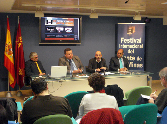 La Unión, 8 de abril de 2009. El Alcalde de La Unión y Presidente del Festival Internacional del Cante de las Minas, Francisco Bernabé, el Concejal de Cultura y Director del Festival, Julio García, y el Director General de Promoción Cultural, Antonio Martínez, han presentado, en la sede de la Consejería de Cultura y Turismo, un avance del XLIX Festival Internacional del Cante de las Minas que se celebrará del 6 al 15 de agosto.