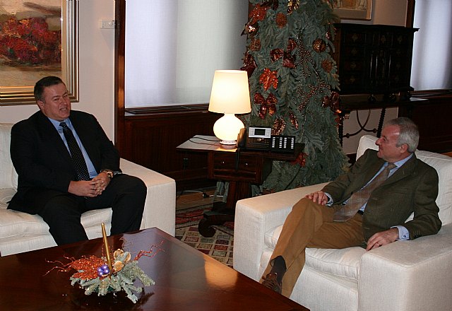 El Palacio de San Esteban en Murcia, sede del Gobierno Regional, ha acogido una reunión entre el Presidente de la Comunidad Autónoma, Ramón Luis Valcárcel, y nuestro Alcalde, Francisco Bernabé, quién ha acudido acompañado del Concejal de Cultura, Julio García.