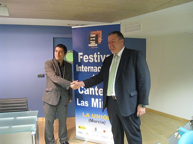 El consejero de Cultura y Turismo, Pedro Alberto Cruz, y el alcalde de La Unión y presidente del Festival Internacional del Cante de las Minas, Francisco Bernabé, dieron a conocer hoy los nombres del pregonero, del autor del cartel y del presentador de la 50 edición del certamen.