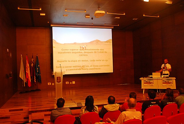 El cartagenero Andrés Lledó realizó ayer la conferencia “Maratón de Sables, Marruecos”, lo que supuso el inicio de esta II Semana de la Montaña. Lledó ha participado durante dos ediciones consecutivas en esta durísima prueba de ultra resistencia.