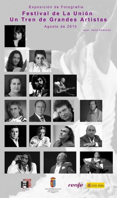 Renfe presenta la exposición de fotografía "Festival de La Unión, Un tren de grandes Artistas" en el interior de varios trenes de Larga Distancia que enlazan la ciudad de Cartagena con Barcelona, Madrid y Valencia, con motivo de la 50 ° Edición del Festival Internacional del Cante de las Minas. Esta acción forma parte del compromiso de Renfe, con la cultura dentro de su estrategia de Responsabilidad Social, Un tren de valores.