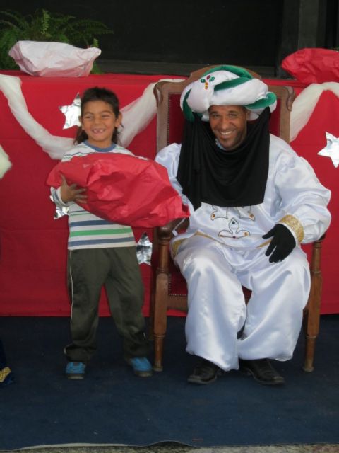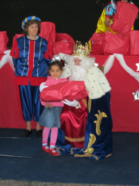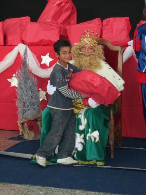 La Unión, 05 de enero de 2011. Con motivo de la llegada de los Reyes Magos a La Unión, la concejalía de Festejos, Mujer y Asuntos Sociales del Ayuntamiento unionense ha organizado hoy una concurrida entrega de regalos para más de un centenar de niños necesitados del municipio, quienes han tenido la oportunidad de abrir los envoltorios y disfrutar allí mismo de sus juguetes.