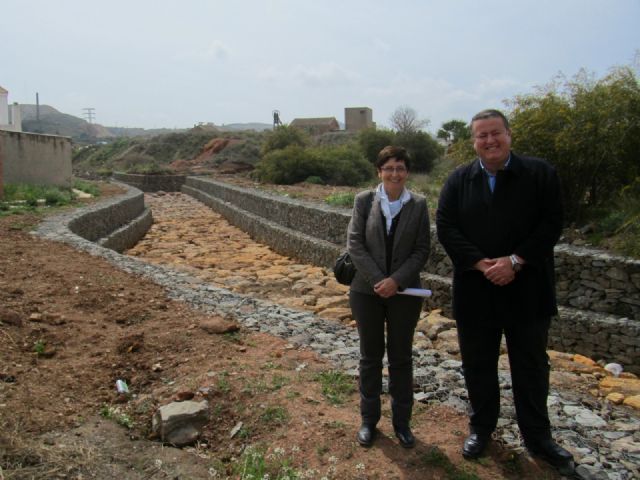 La Unión, 25 de marzo de 2011. La presidenta de la Confederación Hidrográfica del Segura en la Región de Murcia, María del Rosario Quesada, ha visitado hoy, junto al alcalde de La Unión, Francisco Bernabé, las obras de restauración e integración social que se están desarrollando en cuatro ramblas del municipio, en concreto las del Descargador, del Taller, de Porras y del Duende.