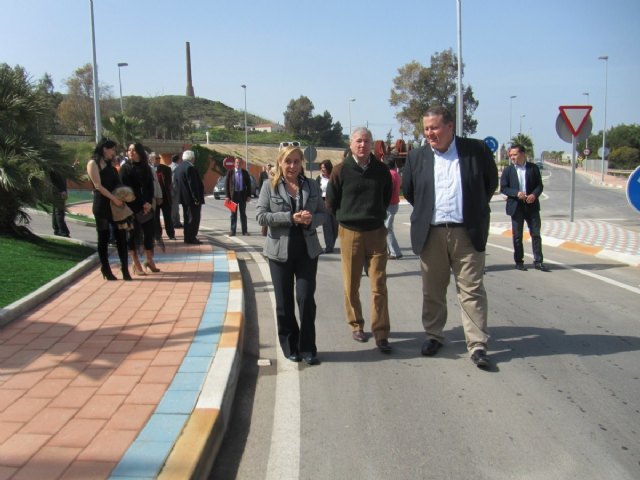 A continuación, la comitiva se dirigió hasta la Avenida de Portmán, vía de entrada a la calle Mayor de La Unión desde Cartagena. En esta ubicación se han ejecutado obras para el acondicionamiento y mejora de la red viaria, así como del entorno de la citada avenida, consistentes en la construcción de una glorieta en la intersección con la subida al cementerio municipal y El Lazareto.