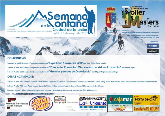 El Club de Montaña 'Roller Masters' ha presentado hoy la III Semana de Montaña 'Ciudad de La Unión', una iniciativa que se celebrará en el municipio unionense del 5 al 8 de mayo y que busca promover el contacto con la naturaleza a través de conferencias audiovisuales y alternativas de ocio y tiempo libre con carácter deportivo.