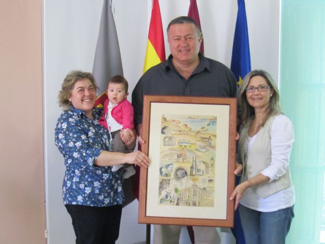 Por su parte, Fina Solano, aficionada a la pintura y colaboradora en varias exposiciones, ha donado una obra que refleja la entrada al Parque Minero de La Unión, y que cuenta con una gama de vivos colores donde se puede distinguir la recortada silueta de la sierra minera y de sus molinos de viento en contraposición al cielo azul y a un soleado día como los que acostumbran en la comarca.