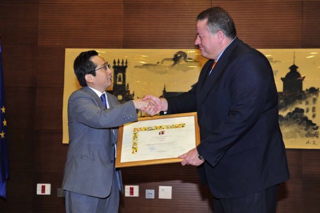 Maehigashi recibía de manos del alcalde de La Unión, Francisco Bernabé este homenaje, porque "estos hechos nos estremecieron a todos y nos hizo comprender que había que actuar de forma urgente". El Alcalde se solidarizó con la reconstrucción del país nipón.