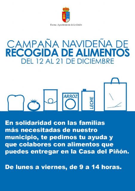 La Concejalía de Servicios Sociales del Ayuntamiento de La Unión ha puesto en marcha un año más su ya tradicional campaña navideña de recogida de alimentos para las personas más necesitadas de nuestro municipio.