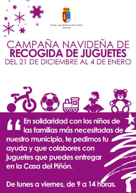 La Concejalía de Servicios Sociales del Ayuntamiento de La Unión ha puesto en marcha un año más su ya tradicional campaña navideña de recogida de juguetes para los niños de las familias más necesitadas de nuestro municipio.