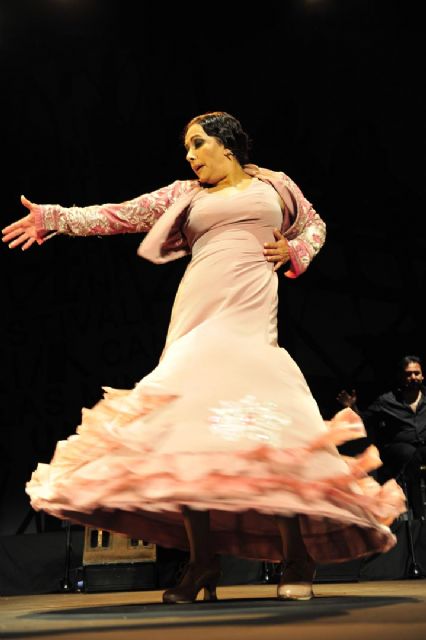 Si ha empezado con una seguiriya sublime, se ha despedido con su grandioso baile por soleá que ha puesto en pie a un auditorio entregado al arte de la genial bailaora Eva Yerbabuena. Mostrando su insuperable fuerza en el escenario, transmitiendo la esencia de su baile, e impregnando la Catedral del Cante del arte que le corre por las venas.