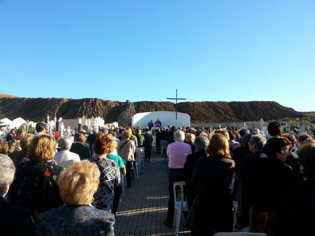 Por tal motivo, la tarde del pasado sábado se celebró en el camposanto una Misa al aire libre oficiada por nuestro párroco Ginés Luis Vicente, a la que acudieron cientos de vecinos y en la que nuestro Alcalde, Francisco Bernabé, acompañado de los Concejales del Equipo de Gobierno, hizo una ofrenda floral en nombre del Ayuntamiento en recuerdo de la memoria de todos los ausentes.