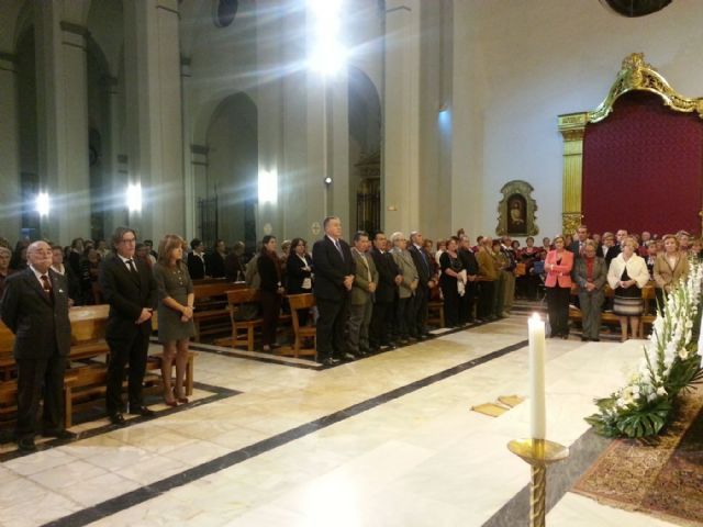 Previamente el templo del Rosario había servido de escenario para la solemne misa que tuvo lugar en memoria de todos los mineros fallecidos de La Unión, que fue presidida por el Párroco D. Ginés Luis Vicente. Durante la Eucaristía se realizó una ofrenda por parte del Presidente del Hogar de Personas Mayores, Salvador Martínez, mientras que la Rondalla de la entidad interpretaba los cánticos litúrgicos.
