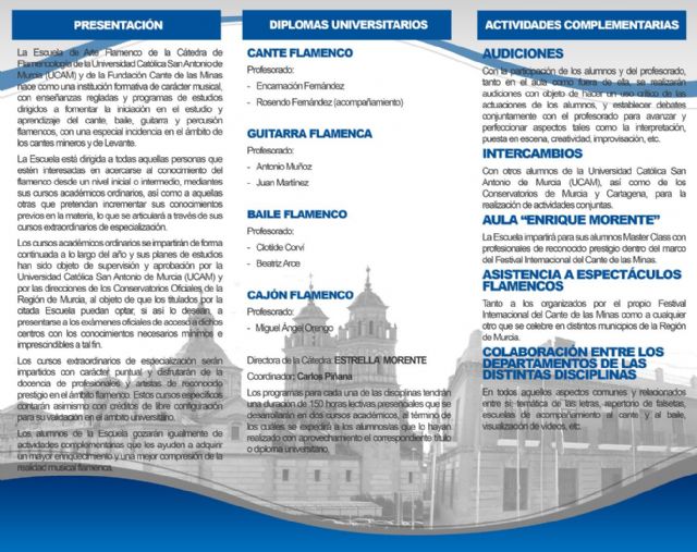 Al frente de la Cátedra, y como directora de la misma, se sitúa la gran Estrella Morente, sin duda alguna una de las referencias indiscutibles del flamenco en la actualidad, en el que se ha situado en lo más alto de su escalafón por sus extraordinarios méritos artísticos. Estrella siempre ha mantenido una estrecha vinculación con el Festival del Cante de las Minas, al igual que su padre, el añorado Enrique Morente, siendo sus visitas a La Unión una constante a lo largo de los últimos tiempos para mostrar siempre lo mejor de su cante.