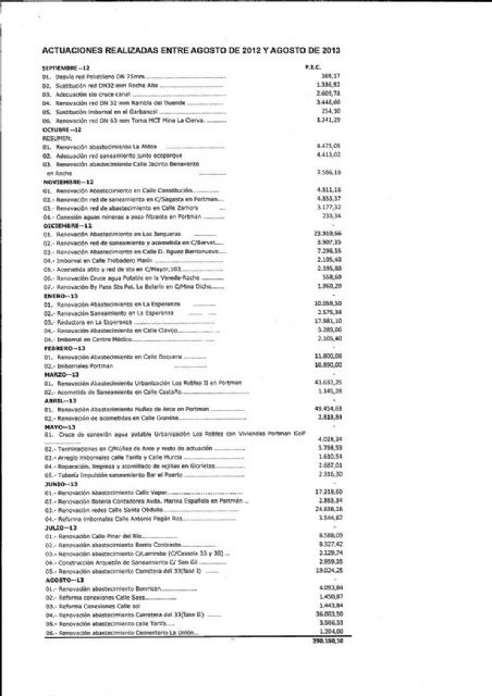 Entre agosto de 2012 y agosto de 2013 la inversión, supervisada en todo momento por los servicios técnicos municipales ascendió a 390.180,10 euros, con actuaciones en todo el municipio.