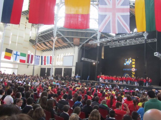 El Colegio Nuestra Señora del Carmen de La Unión ha celebrado en el Antiguo Mercado Público la actividad "Euroscola", que consistió en la representación de 13 canciones ganadoras del Festival de Eurovisión de distintos países.