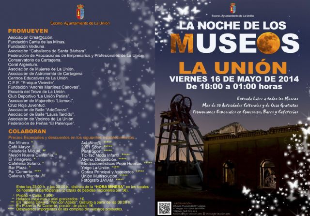 El Ayuntamiento de La Unión, a través de la Concejalía de Turismo que dirige Laura Vicente, en colaboración con la Federación de Asociaciones de Empresarios y Profesionales de La Unión, FAEPU, mediante las Asociaciones de Hostelería y de Comercio, ha presentado el programa de la Noche de los Museos, que tendrá lugar en nuestra ciudad el próximo viernes día 16 de mayo, de las 18:00h. de la tarde a la 1:00h. de la madrugada.