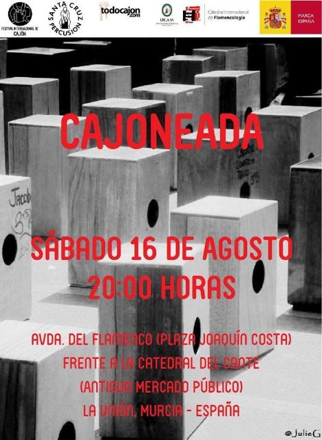 El homenaje continuará el sábado 16, a las 20'15 horas, con la Gran Cajoneada Pública, que llenará de ritmo la Avenida del Flamenco, en la que participarán los cajoneros Guillermo García "El Guille", Antonio Enrique Fernández "Wito", Miguel Ángel Orengo y los guitarristas Rosendo Fernández, Antonio Muñoz, Juan Martínez y Fran Tornero.