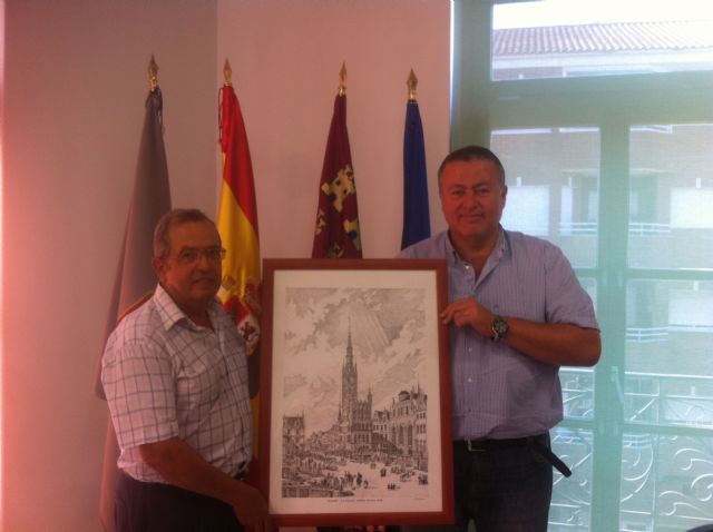 El artista cartagenero Juan Martínez Pedrero, que ha expuesto en estos días en el hall del Salón de Actos del Ayuntamiento de La Unión la muestra "Huellas del Pasado", ha donado al municipio una obra de las expuestas.
