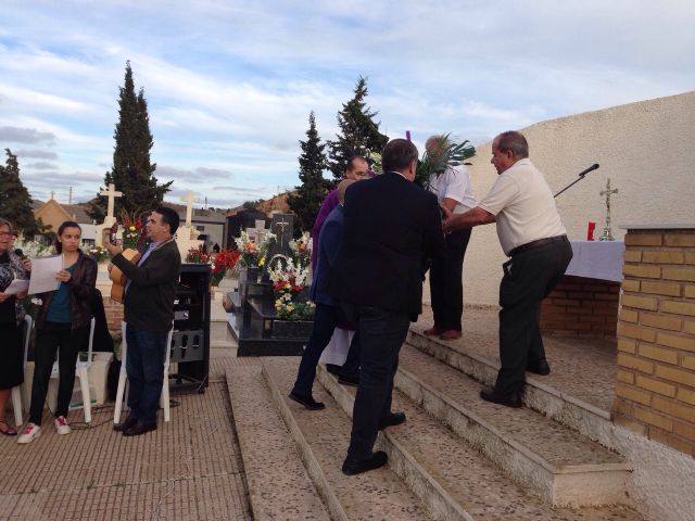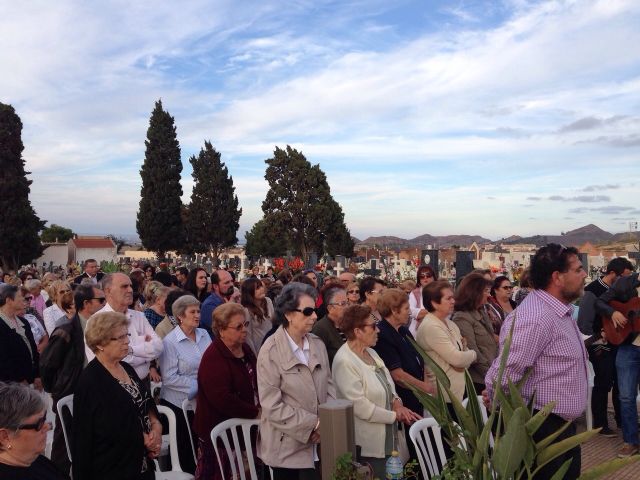 Por tal motivo, la tarde de ayer domingo se celebró en el camposanto una Misa al aire libre oficiada por nuestro párroco Ginés Luis Vicente, a la que acudieron cientos de vecinos y en la que nuestro Alcalde, Francisco Bernabé, acompañado de los Concejales del Equipo de Gobierno, hizo una ofrenda floral en nombre del Ayuntamiento en recuerdo de la memoria de todos los ausentes.