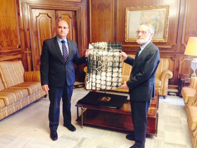 La primera visita del mandatario municipal a la Asamblea como Alcalde de La Unión ha servido igualmente para, como ya es tradicional, entregar al presidente del parlamento autonómico una reproducción del cartel anunciador de la pasada edición del Festival Internacional del Cante de las Minas, obra de Cristina Iglesias.