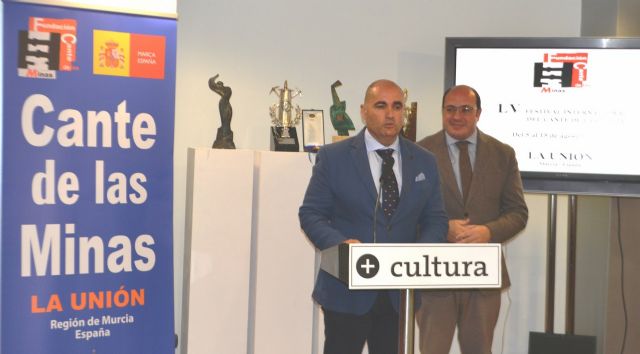 El Consejero de Educación, Cultura y Universidades de la Región de Murcia, Pedro Antonio Sánchez, y nuestro Alcalde y Presidente Ejecutivo de la Fundación Cante de las Minas, Julio García, han dado a conocer esta mañana los primeros detalles de la quincuagésimo quinta edición del Festival Internacional del Cante de las Minas, que se celebrará en La Unión entre el 5 y el 15 de agosto de 2015.