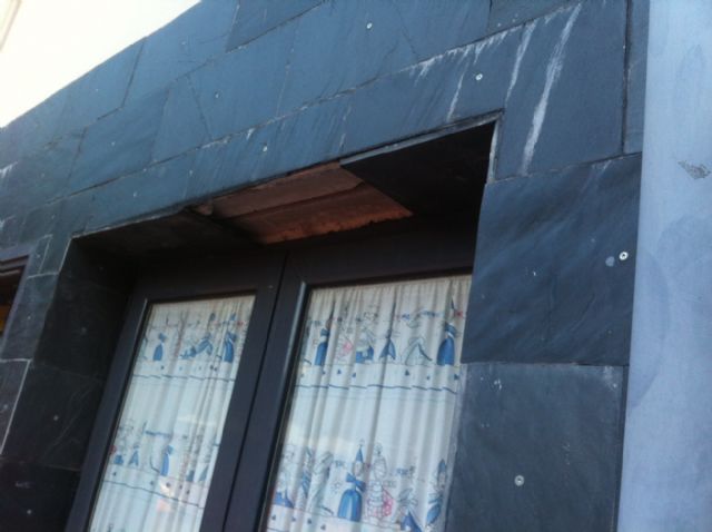 Los socialistas denuncian que los alumnos de infantil de 4 años, llevan desde Octubre del pasado año entrando y saliendo a clase por otro acceso, debido al desprendimiento de placas de revestimiento de la entrada, que afortunadamente no han causado ninguna desgracia.