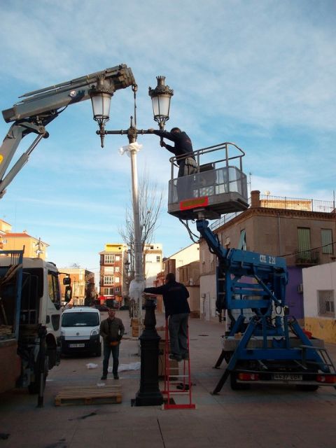Instaladas las nuevas farolas en la plaza Joaquin Costa