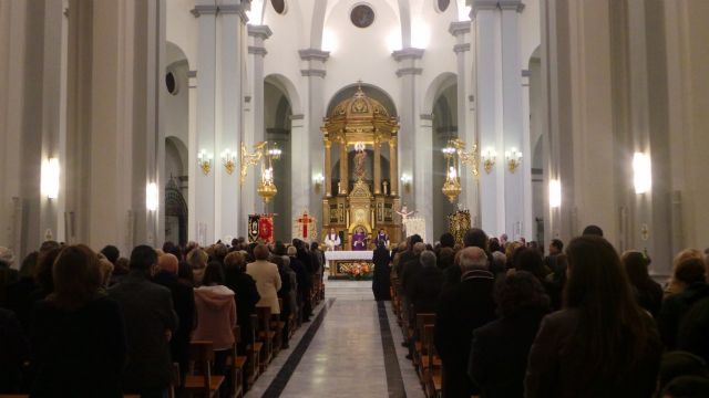 La Coral Argentum interpretó los cantos litúrgicos durante la Santa Misa, llenando de música sacra a todos los feligreses que asistieron a este acto de la Semana Santa Minera.