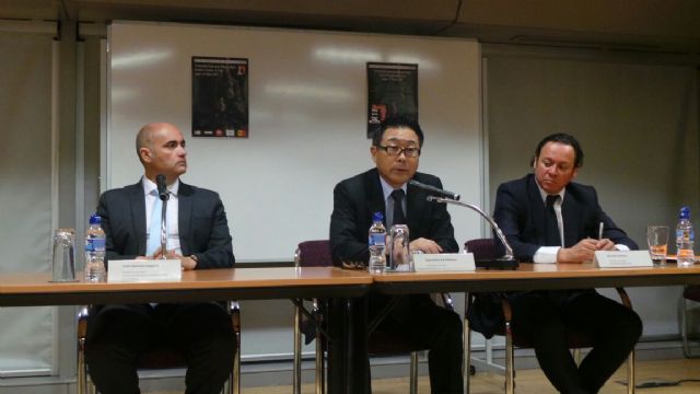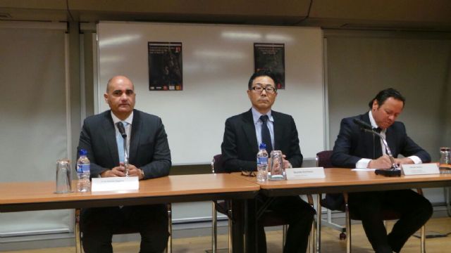 El Alcalde de La Unión y Presidente Ejecutivo de la Fundación Cante de las Minas, Julio García, el Embajador de Japón en España, Kazuhiko Koshikawa, y el Consejero Delegado de Las Minas Flamenco Tour, Aurelio Solana, han presentado esta mañana en la sede de la embajada nipona en Madrid, el Concurso de Arte Flamenco de Las Minas Flamenco Tour, de la mano de la Fundación Maruwa.