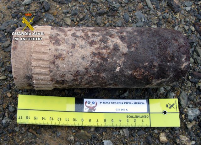 La Guardia Civil de la Región de Murcia, gracias a la colaboración ciudadana, ha localizado un proyectil de artillería, hallado en una zona de monte de La Unión, que ha sido retirado y destruido de inmediato.