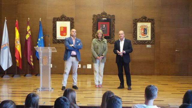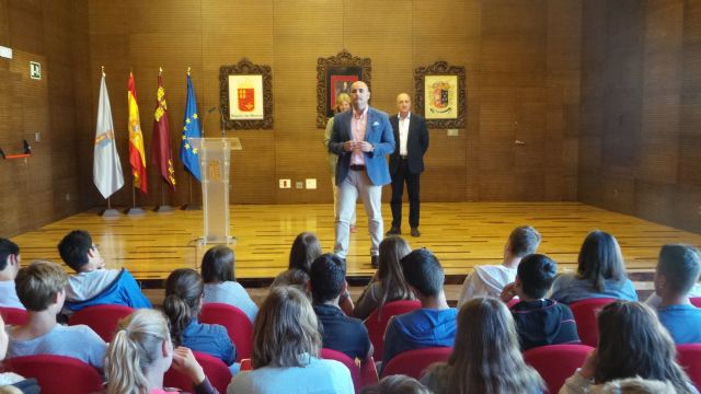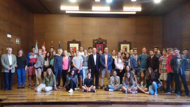 El Alcalde Julio García, ha recibido esta mañana en la Casa del Piñón, a un grupo alumnos y profesores del IES Sierra Minera de La Unión, que junto con el centro de secundaria Christoph-Probst-Gymnasium, situado en Gilching (Alemania) han participado en la actividad "Intercambio Escolar".