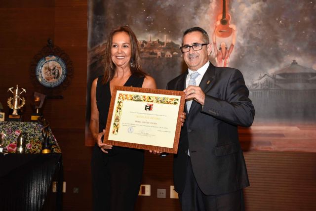 La escritora María Dueñas, autora de éxito y profesora de la Universidad de Murcia en excedencia, ha recibido esta tarde en la Casa del Piñón, de manos del alcalde de La Unión, Pedro López Milán, el Castillete de Oro de la presente edición del Cante de las Minas que este año está dedicado a la Región de Murcia. Tras recoger el galardón, la autora se ha dirigido al público para agradecerlo y recordar a otros escritores que cuentan con él, como el cartagenero Arturo Pérez Reverte, "lo que da continuidad al trío flamenco, literatura y minas". María Dueñas ha valorado también la concesión del Castillete, "en un mundo tan de hombres como es el del flamenco y las minas", y ha pedido al alcalde "que más mujeres sigan ese camino".