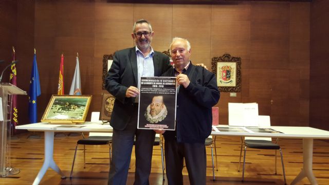 El Alcalde de La Unión, Pedro López Milán, ha presentado esta mañana en el Salón de Plenos del Ayuntamiento junto con el autor de la exposición cervantina, Rogelio Mouzo, el cartel y las actividades que se realizarán para conmemorar el IV centenario de la muerte del escritor universal Miguel de Cervantes.