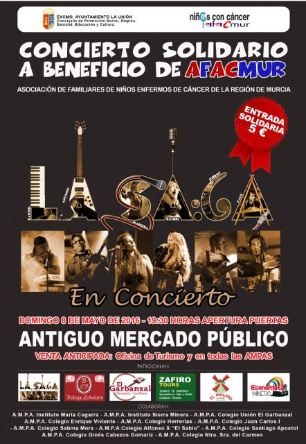 El concierto lo ofrecerá de forma altruista la orquesta "LA SAGA" y se celebrará el próximo 8 de Mayo en el Antiguo Mercado Público.