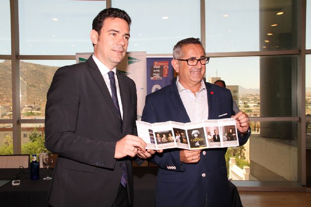El Alcalde de La Unión y Presidente Ejecutivo de la Fundación Cante de las Minas D. Pedro López Milán- , y el Director del Corte Inglés Cartagena D. Alfredo Carvajal- han presentado hoy en el referido centro comercial de la ciudad departamental las novedades en la venta de localidades para la quincuagésimo sexta edición del prestigioso certamen flamenco, venta que precisamente se inicia hoy día 1 de junio en El Corte Inglés (toda España), así como en la oficina de turismo del Ayuntamiento de La Unión.