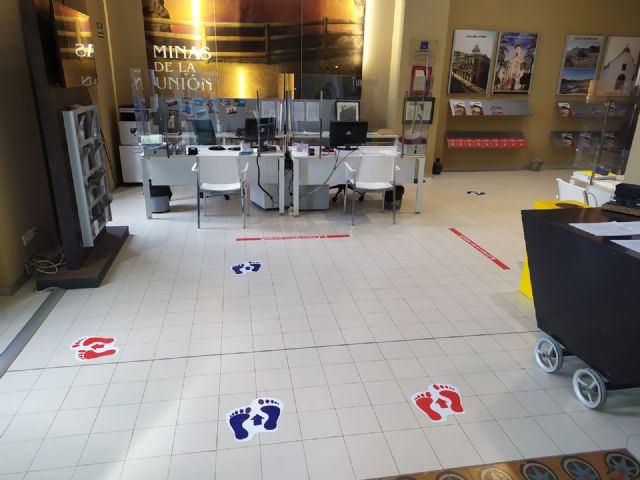 El plan de contingencia anti Covid-19 de la Oficina de Turismo incluye medidas como el aforo limitado de personas, instalación de mamparas de separación, pegatinas y carteles indicadores para guardar distancias de seguridad, geles hidroalcohólicos, mascarillas para usuarios, desinfección de zonas de espera y superficies de contacto, empleo de productos de limpieza homologados o reparto individualizado de folletos.