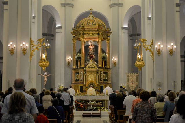 La iglesia de Nuestra Señora del Rosario de La Unión ha acogido esta mañana la Misa en honor Virgen del Rosario, patrona y alcaldesa perpetua de La Unión. La ceremonia ha sido oficiada por el párroco, D. Ginés Luis Vicente, junto al antiguo coadjutor, Juan José Castillo Canoves, actual párroco de la Iglesia de Nuestra Señora del Carmen de Cartagena.