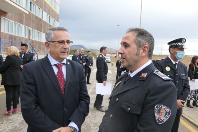Al acto ha acudido el alcalde de La Unión, Pedro López Milán, y el jefe de Policía Local de La Unión, Pascual Carmona Real, que, tras la entrega de diplomas, han felicitado a los nuevos subinspectores, funcionarios que por promoción interna se incorporan a las tareas de subinspección del Cuartel de Policía Local de La Unión.