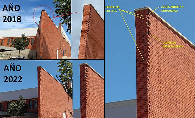 Al respecto, nuestro Secretario General y Portavoz, Joaquín Zapata, ha recalcado que “la fachada ya tuvo los primeros desprendimientos de ladrillos en 2018, sin que por parte del alcalde se haya hecho nada pese a la denuncia que se formuló ya por aquel entonces. Todo ello ha provocado un notable empeoramiento de la estructura de la misma, que a día de hoy amenaza con desmoronarse ante la absoluta indiferencia de los representantes del gobierno local socialista, que vuelven a hacer gala del total desinterés, incapacidad y desgana con los que gestionan el Ayuntamiento”.