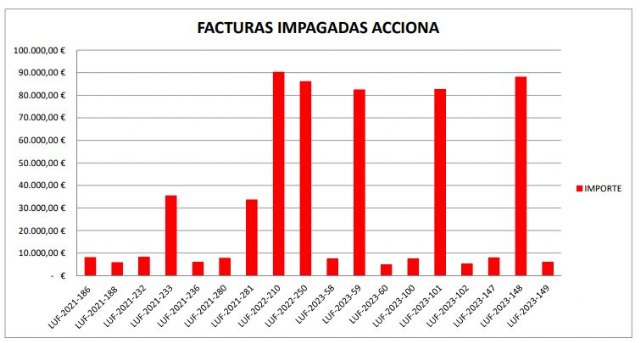 El anterior Gobierno del Ayuntamiento de La Unión, del PSOE, ha dejado una deuda de más de medio millón de euros por facturas impagadas a Acciona, S.A, la empresa concesionaria de servicios de aguas. El nuevo Equipo de Gobierno, durante este primer mes al mando, ha examinado la contabilidad de varias áreas sorprendiéndose con las deudas que han ido apareciendo, todas con fecha del gobierno del ex alcalde López Milán.