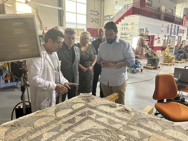 Durante la visita se han explicado las minuciosas labores que se han realizado en la imagen desde su recepción, hace unos meses, así como los detalles que quedan para finalizar las obras de restauración. También se han visitado los trabajos de remodelación de los mosaicos de la Villa Romana del Paturro de Portmán.