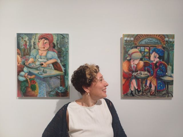 'La luz azul' está formada por una colección de pinturas en las que Antonia Esther hace un repaso por el pasado y la historia de La Unión, con las mujeres como protagonistas. El título de la muestra hace referencia al color que adquiría la llama blanca de las lámparas mineras cuando quema gases tóxicos o peligrosos.