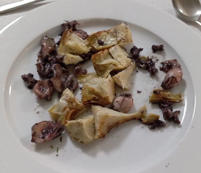 La cena ha estado protagonizada por carpaccio de salmón y bacalao, alcachofas con chipirones, dorada a la plancha con gulas y gambas y carrillada con reducción de px y patatas panaderas, todo maridado con vino tinto rioja, rosado y blanco, cerveza, refrescos y agua mineral. Como postre, se ha servido una tarta de San Marcos, finalizando todo con una copa de cava Brut Nature.