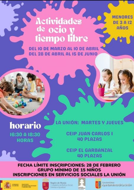 Las familias interesadas pueden realizar la inscripción hasta el 28 de febrero en los Servicios Sociales de La Unión. Para que las actividades se lleven a cabo, será necesario un grupo mínimo de 15 niños por centro.