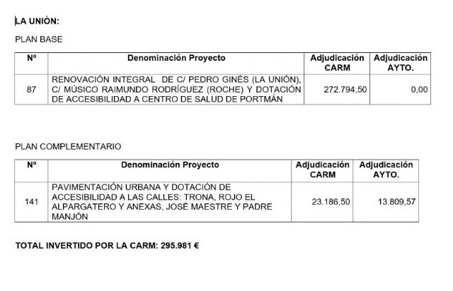 15/01/2020 El Plan de obras y servicios 2018/19 de la Comunidad Autónoma deja unos 300.000 euros para arreglos y mejoras en La Unión, Portmán y Roche